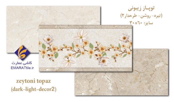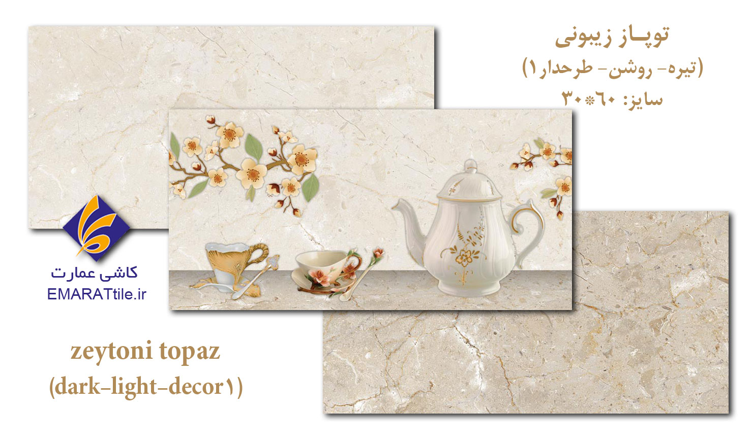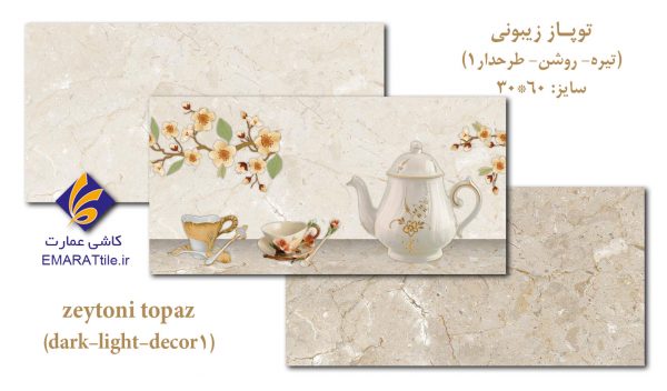 کاشی و سرامیک توپاز زیتونی طرح دار 1 دیجیتال سایز 60*30 عمارت میبد